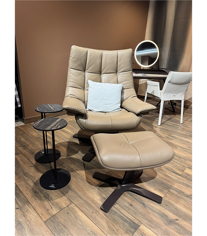 Крісло 600K QUILTED KING італійської фабрики NATUZZI ITALIA у тканинній оббивці з реклайнером та пуфом оформлене у сучасному стилі.