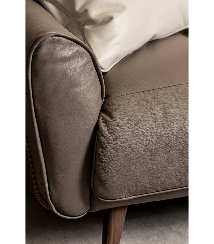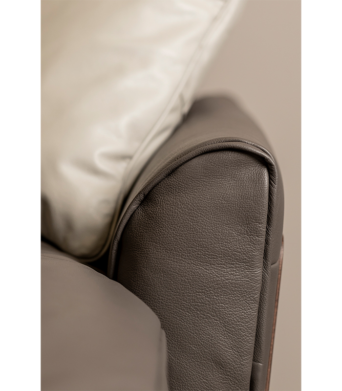 М'який куточок TALENTO B993 від італійської фабрики NATUZZI EDITIONS кутової конфігурації з м'яким широким сидінням та м'якою спинкою у шкіряній оббивці, оснащений дерев'яними панелями на боковинах, виконаний у ретро-стилі.